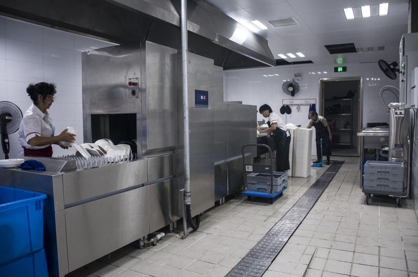 ⑦上下水要通暢:消洗間用水量是非常大的,要有足夠的壓力流量。上下水設施點位數量、管徑大小要滿足要求。特別是排汙下水要流暢,由於殘食、汙油容易造成堵塞,洗碗間應選用耐溫的下水管,管徑要不小於DN75。一且汙油凝結,便於用熱水燙管道融化汙油。